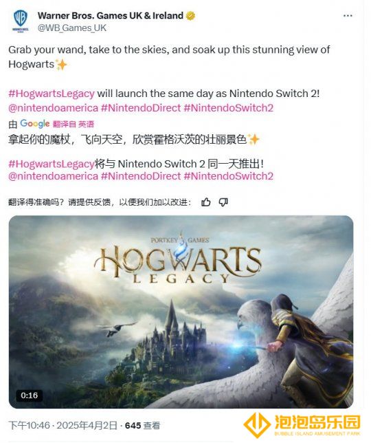 Switch 2将于6月5日在日本和北美发售,定价449美元。在今天的直面会上,任天堂公布了Switch 2的首发护航游戏,绝大多数为第三方游戏。