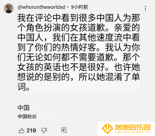 意识到要出直播事故的Speed,打断了她的话便匆匆上车了。并且还不忘为其遮掩称:“我觉得那个女孩不会说英语。”然而作为一场全程直播的活动,这位coser的言论已经掀起了轩然**。不论是外网还是国内论坛,都是一片吐槽声。