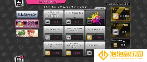 生日任务包括:抽到生日卡,升级进化生日卡,用角色卡打相应角色歌,抽到任意角色,卡升级进化,用相应角色打三次押韵,消费100点体力