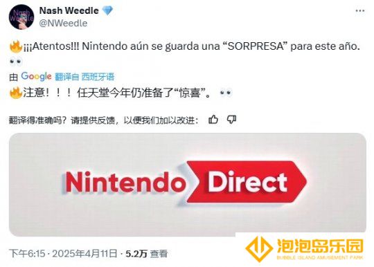 Weedle在X平台推文中透露,任天堂计划在2025年推出一款未公开的重磅软件惊喜。网友推测这可能会与6月Switch2发布后的任天堂直面会相关联——毕竟老任向来习惯通过直面会公布重大消息。