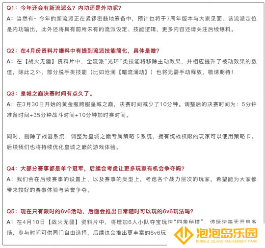 例如,此前有玩家反馈皇城之巅决赛时间太长,策划在3月30日开始的黄金服跨服皇城之巅,决赛时间减少了10分钟;还有玩家反馈限时的6v6活动不过瘾,策划也表示会在4月10日【战火无疆】资料片中,将增加6人小队夺宝玩法“四象秘境”。