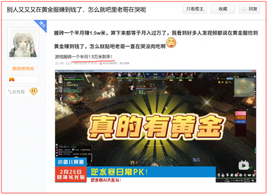 还有人另辟蹊径,由于黄金服真是每天“捡黄金”,在MMO界出了名,来搬砖的玩家蜂拥而至,但是很多人都是从其他游戏转战过来的,还有些年轻人此前可能根本没有接触过MMO,于是就有灵魂导师开始起号,直接卖起了搬砖教程。