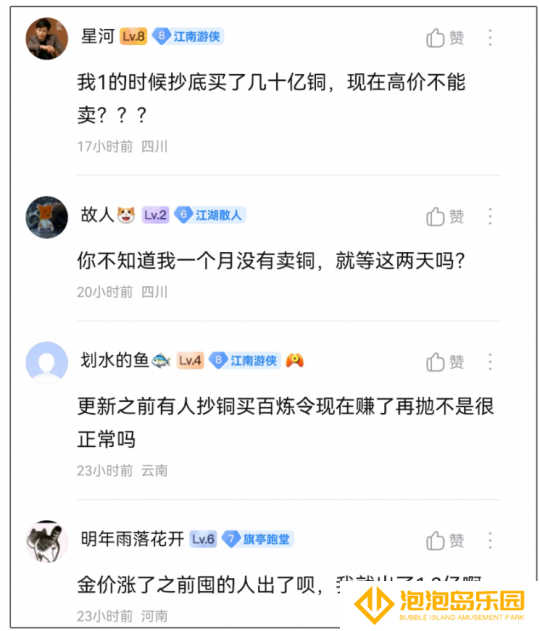 就说有一类玩家,他们自己根本不搬,而是等待铜钱低价的时候抄底,等到官方有新版本的时候铜价暴涨,这时候抛售,有人竟然可以一夜赚10万。