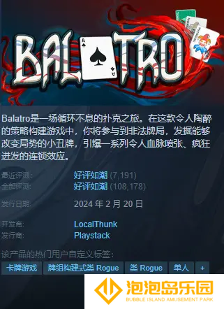 今年最热门的卡牌类游戏之一,将扑克玩法和roguelike结合,策略性极强,玩法新颖,容易上瘾。
