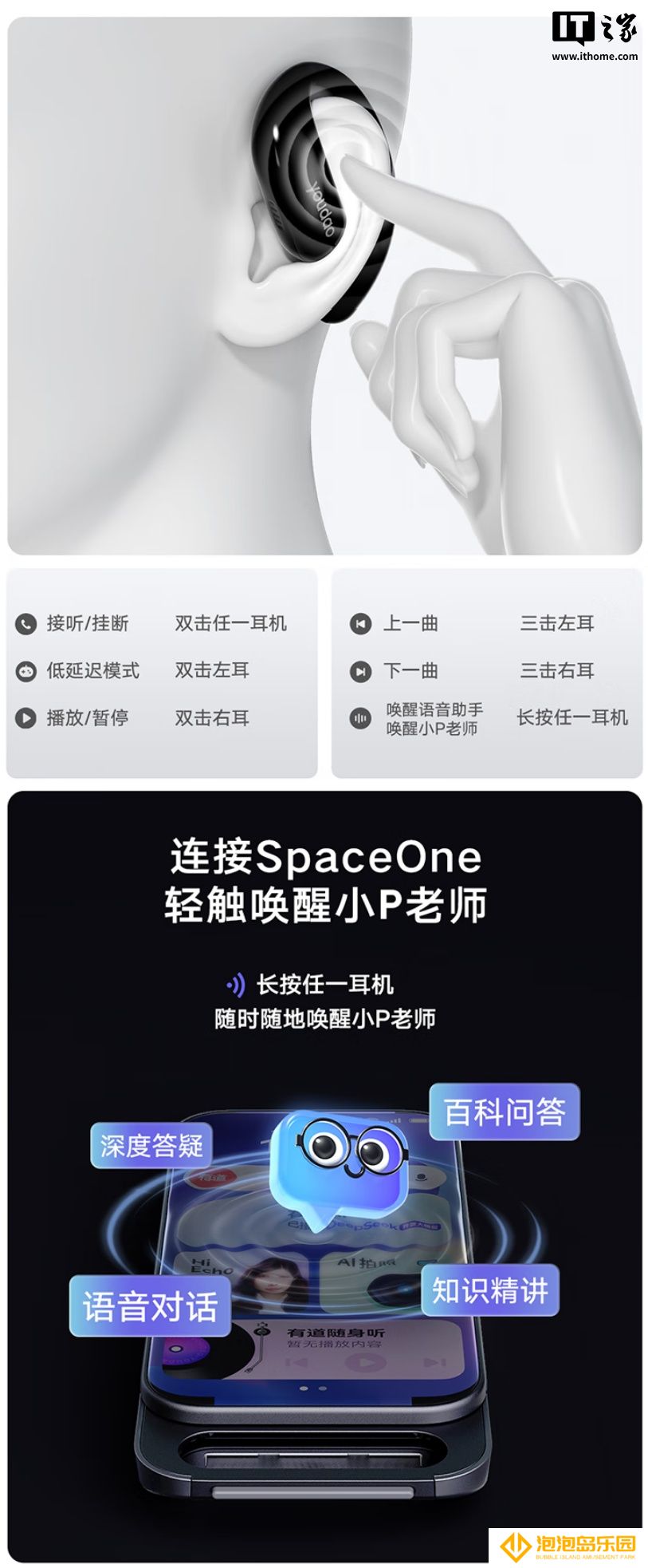 此外,Youdao OpenEar 配有蓝牙 5.4 芯片,支持单手手势操控,还可连接有道学习硬件SpaceOne 唤醒小 P 老师。